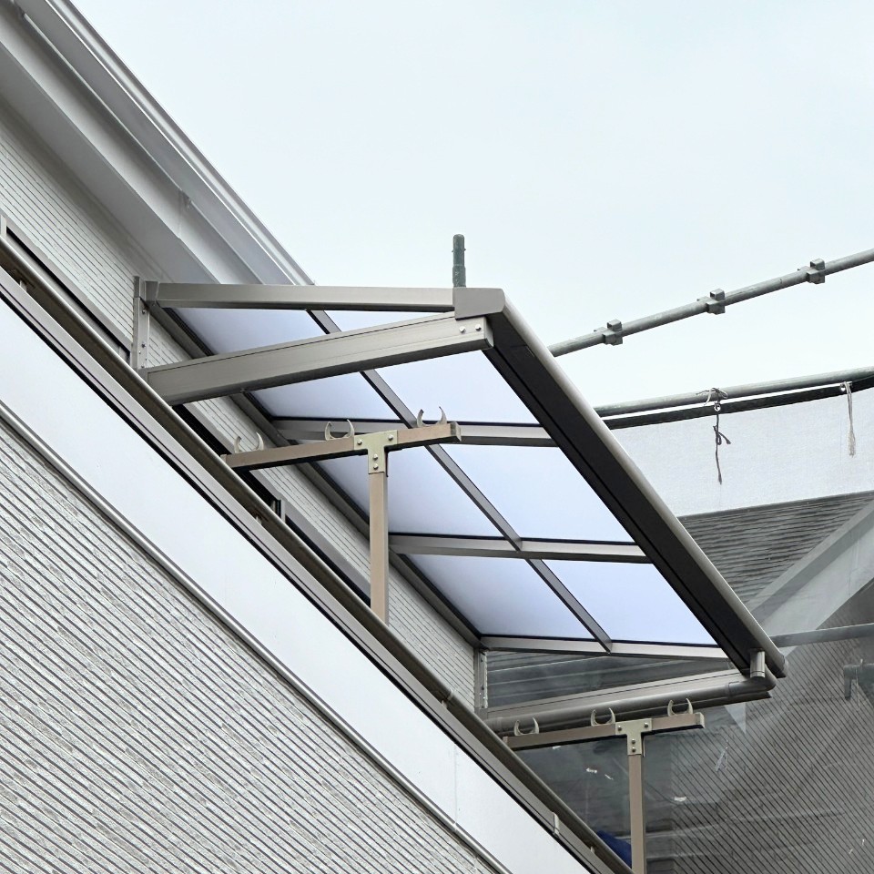 本体カラーは外壁にも馴染むシャイングレーで、後付けでも違和感のない仕上がりになりました。
